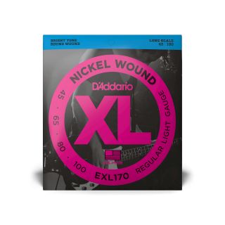 XL Nickel are the industry standard in electric bass strings. With their clear fundamentals, booming tight lows, and reliable D’Addario construction, they’re trusted by players everywhere to handle any performance. XL Nickel bass strings are made with a high carbon steel core and wound with nickel-plated steel wrap wire, for consistently bright tone and smooth playability, great for a wide variety of bass styles. 45-100 Regular Light strings is our most popular bass gauge, providing a perfect blend of response and playability.