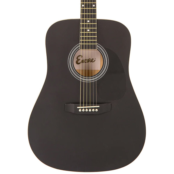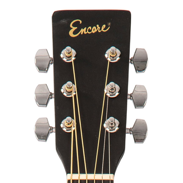 Encore acoustic guitars are expertly constructed,full size, big-sounding instruments. They offer a pleasantly crisp and bright tone with an impressive ringing sustain. Responsive and easy to play, they make an ideal instrument on which to begin learning guitar.