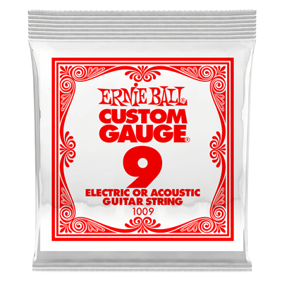 Ernie Ball Plain Steel Electric or Acoustic Guitar Strings are made of specially tempered tin plated high carbon steel used on electric and acoustic guitars. Ernie Ball revolutionized the market by offering Custom-Gauge single string options allowing guitarists to create personalized string sets.