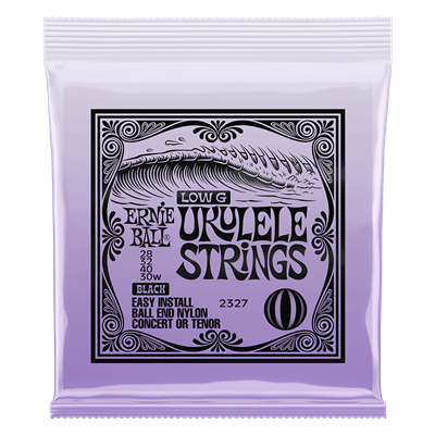 Ernie Ball is proud to announce two new ball-end ukulele sets featuring a .030" gauge wound low G string. This new gauge combination is ideal for players who want to tune their ukulele using "Low G" tuning, which is more similar to traditional guitar tuning. These new Ukulele strings are made from 100% nylon monofilament, while the wound G string is made from nylon multifilament wrapped with 80/20 bronze. Ernie Ball Ukulele strings feature ball end construction for easy installation in traditional clear resin for a bright, balanced tone with excellent projection and black resin for a warm, rich tone with percussive attack.
