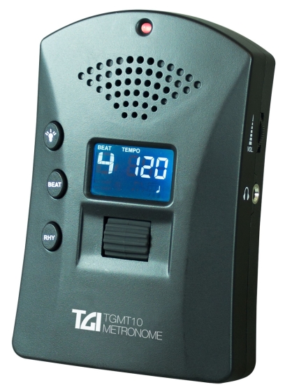 Digital metronome with LCD tempo readout and Integral pull out stand.